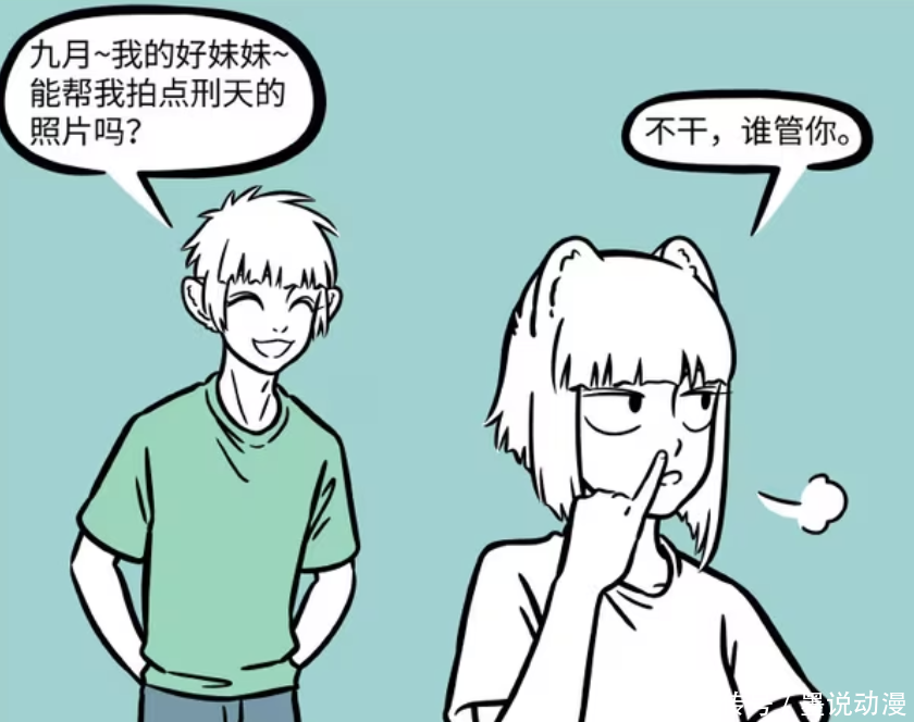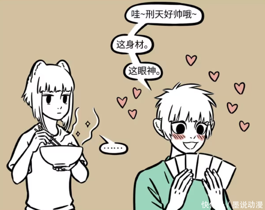 《非东说念主哉》漫画版中,十一月因为给九月送了一次饭各种游戏等你来!,是以对刑天很感兴味。十一月乞助九月,求他拍几张刑天的像片,还以豪华限量鲍鱼泡面看成条目。九月最终是去偷拍刑天,也吃到了豪华泡面,十一月看到刑天像片,亦然粗鲁无比。