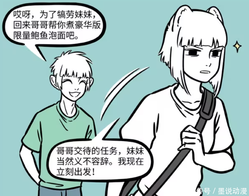 十一月如故若干懂情面世故,默示会犒劳妹妹。只消九月简略拍回刑天的像片,那么回归就会吃到豪华限量鲍鱼泡面。这种泡面,关于九月来说如故有很大的诱骗力。九月默示,哥哥的任务,便是她的任务,必界说阔别辞。