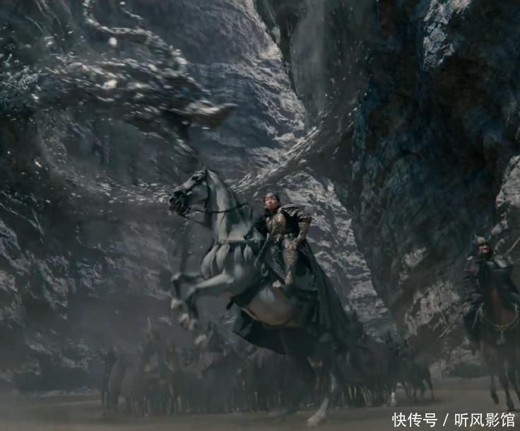 邓婵玉勒马,她死后,一柄利剑化作的玄色巨龙盘旋腾空而起,伴跟着呼啸声震颤山谷。