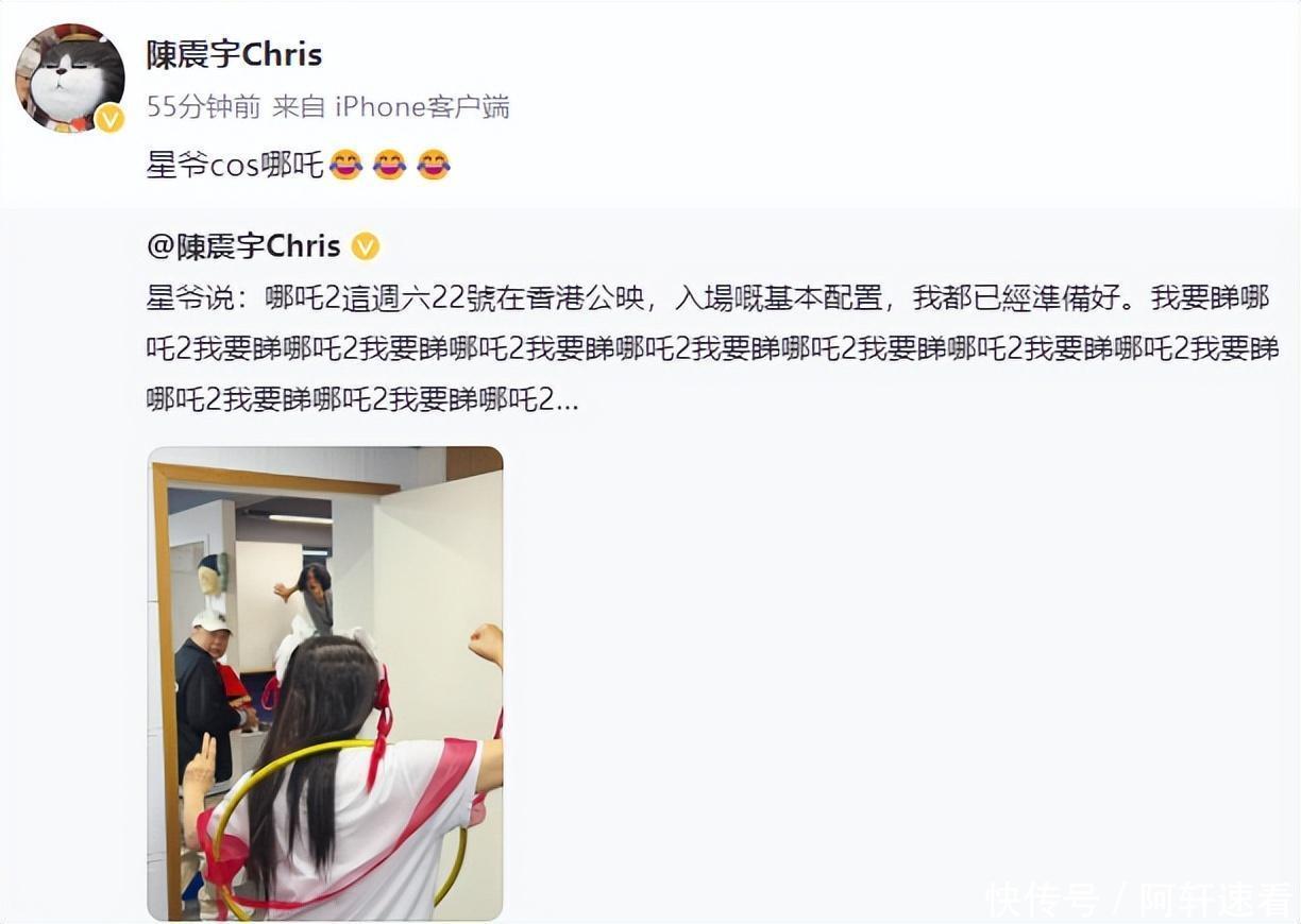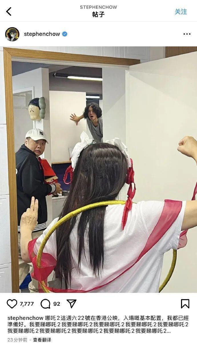 据南都文娱,周星驰牙东谈主陈震宇也在外交平台晒出周星驰cos哪吒的背影照,并配文:星爷cos哪吒。