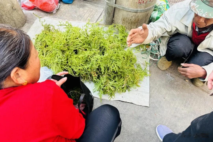 小胡同里的摊主就不同样了,看到你向前拍摄不但全程乐呵呵的,有些还会关怀地详备先容草药的具体用处(臆测他们依仗着我方本来就是“打游击”的身份,是以各方面齐没什么顾虑)。比如这天碰见的毛糙的摊位,只摆着一种看起来像毛茸茸的“猫尾巴”同样的干草:“它通体黄绿,茎细长而匍匐,上头密密匝匝长满了像松针同样微小的叶子,摸起来有些扎手,却又带着山野间阳光的滋味”。摊主正用搀杂着方言的普通话跟路东谈主倾销:“这个是伸筋草,泡酒喝,挑升治动作麻痹、腰杆痛的。”