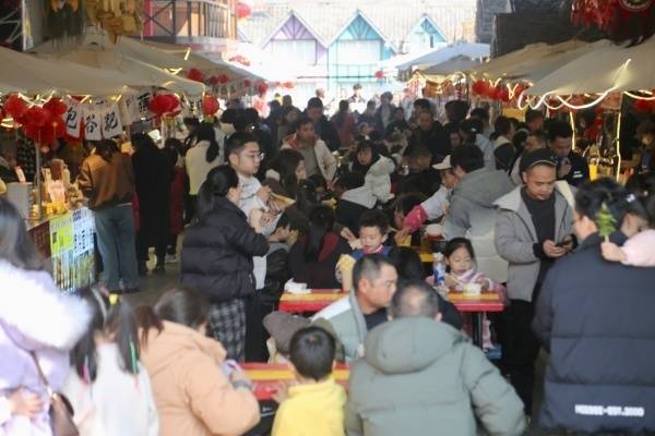 景区内,新春商场开街迎客,非遗手作、年货特产、脾气小吃林林总总。策马巡游、民风展演、年味打卡点前旅客联翩而至,人人安身拍照、体验互动,在中西交融的场景里感受别样年俗。游乐项现在排起长队,亲子家庭尽情畅玩。好意思食街区内的暖锅、脾气土菜、渝味小吃香气扑鼻,乡村游的焰火气与幸福感实足。