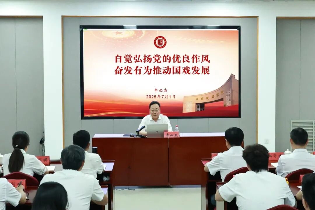 中国戏曲学院排练厅内,《红灯记》的排练现场师生皆聚一堂。京昆系党总支文牍王媛以剧中李玉和猛火金刚的党员形象为切入点,带来一堂廉正主题党课。王媛将红灯精神比作艺术传承的明灯,示意“红灯是咱们的传家宝,让红灯长久照射咱们前行”,强调唱好《红灯记》先重点亮心中的“红灯”,演员师生在唱念作念打中既要打磨本领,更要淬真金不怕火艺德。