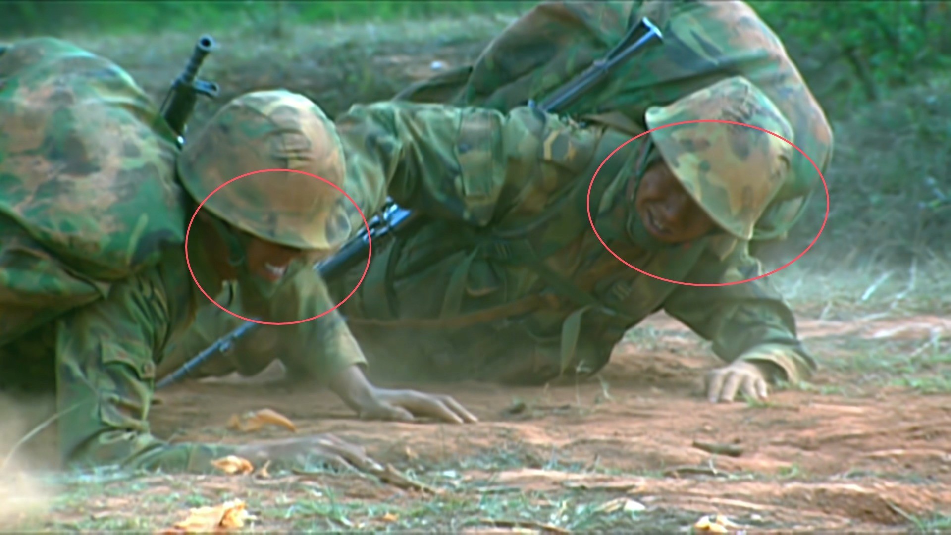 第六个:许三多若有若无的手套,在11集,许三多腹部绕杠作念了300多个时,咱们看到许三多的坚忍,可我回超越来看这段时,发现了个细节,许三多在远距离的场景时,东谈主家是戴入部下手套的,可当你把镜头拉近后却发现许三多的手套广大消逝了。