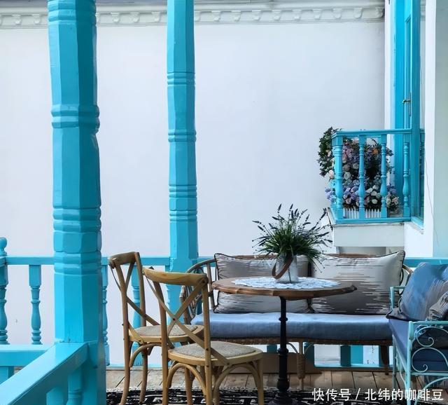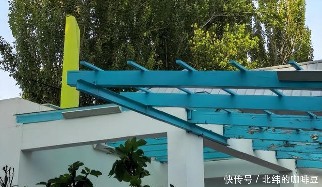 院子里的亭子使用木头搭建,上边还粉刷了一层“伊犁蓝色”,很有地域秉性。 就连门窗也被刷上了这个方式,不说是私东说念主住宅,还认为是哪个秉性民宿。 亭子下边还放了一个长桌,上边铺着具有秉性斑纹的桌布,相配杰出。