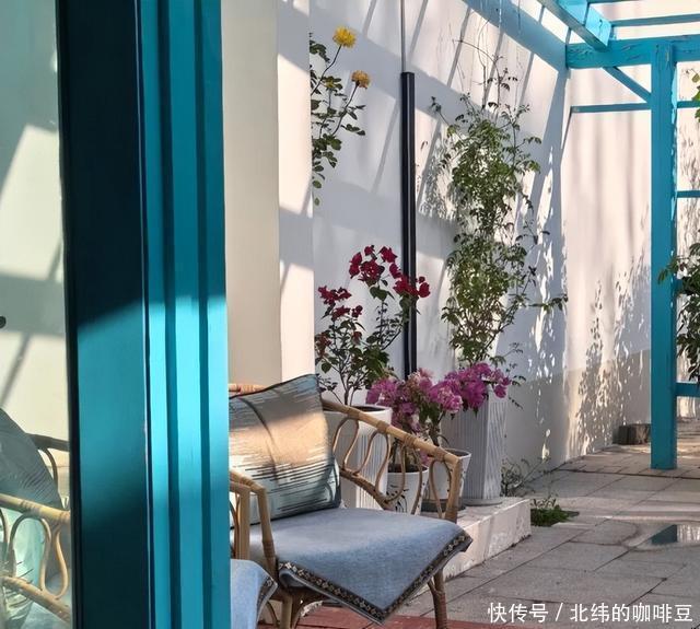 院子窗边的连廊上还铺上了地毯,方式固然不是飘逸的,可是也给院子添加了油腻的颜色。 连廊上还放了沙发凳子和圆桌子,杰出有异地风情。 再加上各式鲜花绿植的遮拦,给院子又带来了渴望。