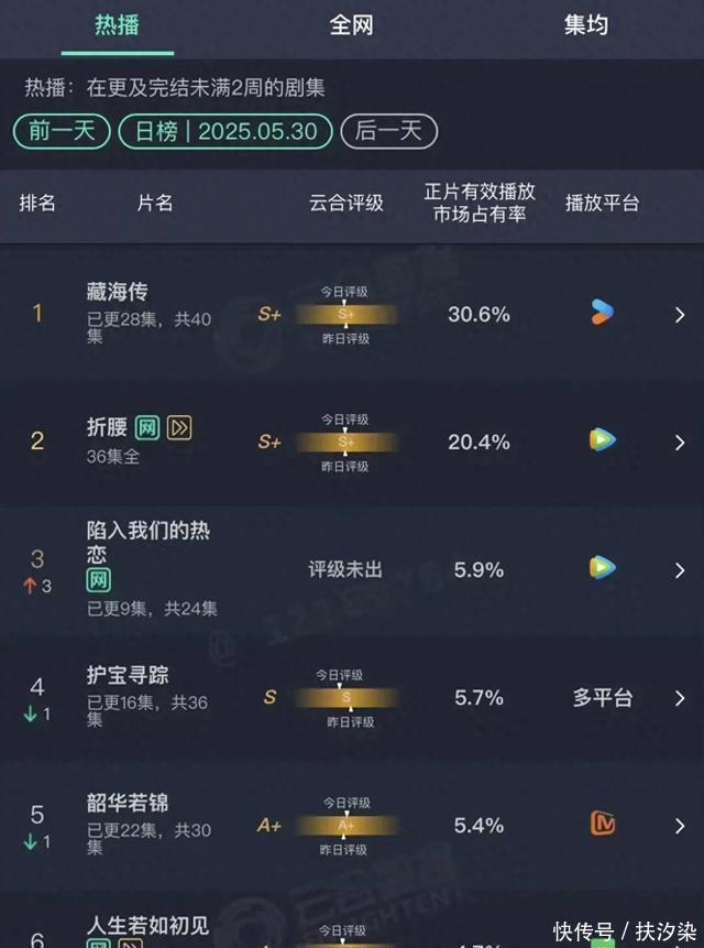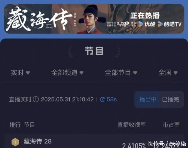 肖战《藏海传》云合占比破30%,及时收视破2.4%,总共榜单断层领跑,大爆看得见!合座起立!竟然要为《藏海传》狠狠点赞!藏海传云合占比冲破30%!妥妥大爆剧印证!藏海传的及时收视率破也冲破了2.4%,可见不雅众底盘抓续坚挺!就连央八也切身出来发战报,5月31日播出的第二集平均收视率高达2.1%,双集平均拉高到1.9%!市占率超12%,灯塔单日播放量达9709.2万,占比30.95!
