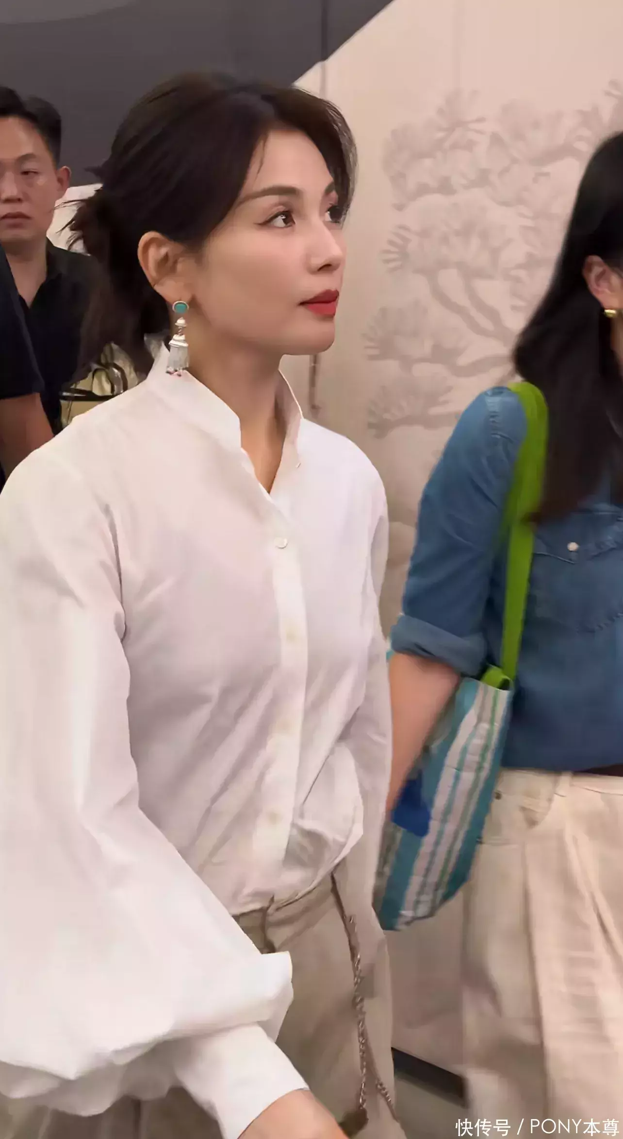 尤为亮眼的是,刘涛将衬衫下摆一起塞进裤子里,这一细节斯须优化了体魄比例,拉长了腰线,让举座造型更显利落干练,无缺均衡了灯笼袖带来的柔好意思与职场风的利落。