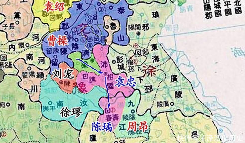 在《淮南凭什么成为袁术东山再起之地?袁术为什么与陶谦起冲突?》这篇著作中,咱们照旧分析过,193年春夏,袁术从南阳北上,路过兖州、陈留,最终被曹操在匡亭、封丘一带打败后,他一齐经梁国逃到沛国,再南下淮南,准备找陈瑀的寿春求卵翼。但是,袁术的敌东谈主陶谦,照旧在豫州彭胀势力,并筹画绝对取代袁术,任命陈瑀的二弟陈珪为沛相,收敛原沛相袁忠离开,最终消亡了沛国。与此同期,陈瑀派兵顽固袁术的去路,而陈珪也在沛国站稳了脚跟,陶谦的布局意图让袁术在莫得补给的情况下绝对断粮,最终堕入绝境。