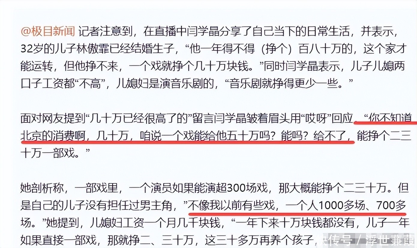 在小城市或者农村,一年赚10来万元的大有东说念主在,闫学晶面临普罗大家,说男儿一年要100万才够花,这谁听了皆以为何不食肉糜。