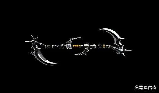 如上图所示,这就是怒斩的高清外不雅复原图,一截弯鬈曲曲的骨干两头是雷同死神镰刀的芒刃,并且芒刃另一端还有尖刺。至于手柄在骨干中间,独揽还有两把小芒刃,这把神兵举座看起来真有种“生东说念主勿近”的嗅觉。使用怒斩袭击竟然前后都能顾及到的稀薄扬弃,这么的双头芒刃神兵设定在听说历史上亦然惟一无二的存在。