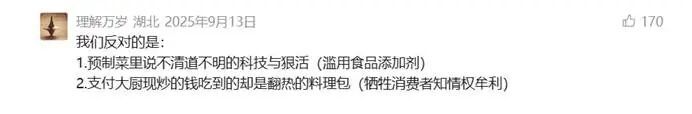翻译成东说念主话即是,不错作念预制菜,但别按现作念的价钱卖给我。