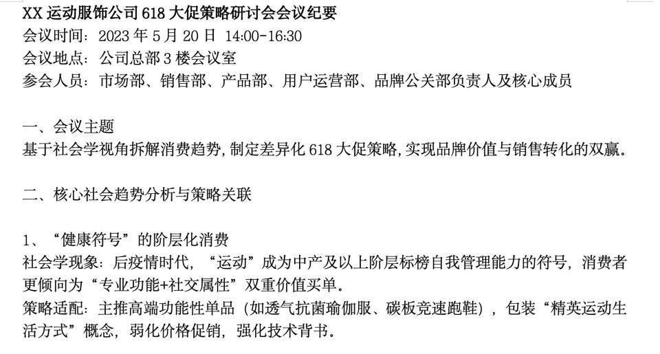 文档实验主如若xx通顺公司一则对于“618大促”的会议纪要。