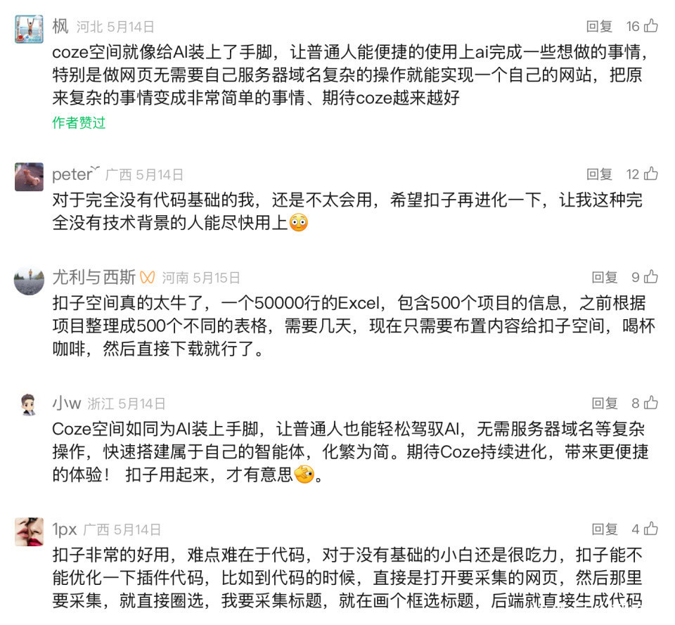 扣子空间正成为东谈主们提供AI免费打工东谈主的平台。不少试用上扣子空间的东谈主称赞“Coze空间就像给AI装上了看成”、“一个50000行的Excel喝杯咖啡就整理好了”。同期,各路网友也奋勇提议“优化插件代码”等修订宗旨。