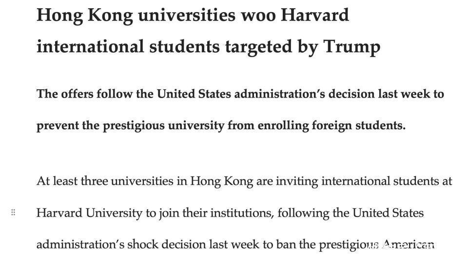 文档实验是《Nature》杂志网站上刊登的一篇英文报谈,主要敷陈了香港高校向哈佛外洋学生抛出橄榄枝的局势。