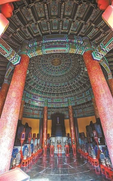 r在某些建筑纵深所在的中轴线上,巧合会拓荒一根从大地纵贯屋脊的柱子,这等于中柱。它犹如建筑的脊柱,将进深所在的空间明确诀别为前后两部分。中柱常见于宫殿的门殿、寺庙的山门或一些民居的厅堂之中,具有横暴的对称与导向作用。当作一座无梁殿,天坛祈年殿共有三圈柱子共28根,中央巍然兀立着四根浩繁的“龙井柱”(也叫里金柱),它们标记四季,是扫数这个词环形建筑结构的有余中心;中层十二根大柱(也叫外金柱)比龙井柱略细,标记一年的十二个月;外层十二根柱子叫檐柱,标记一天的十二个时辰。