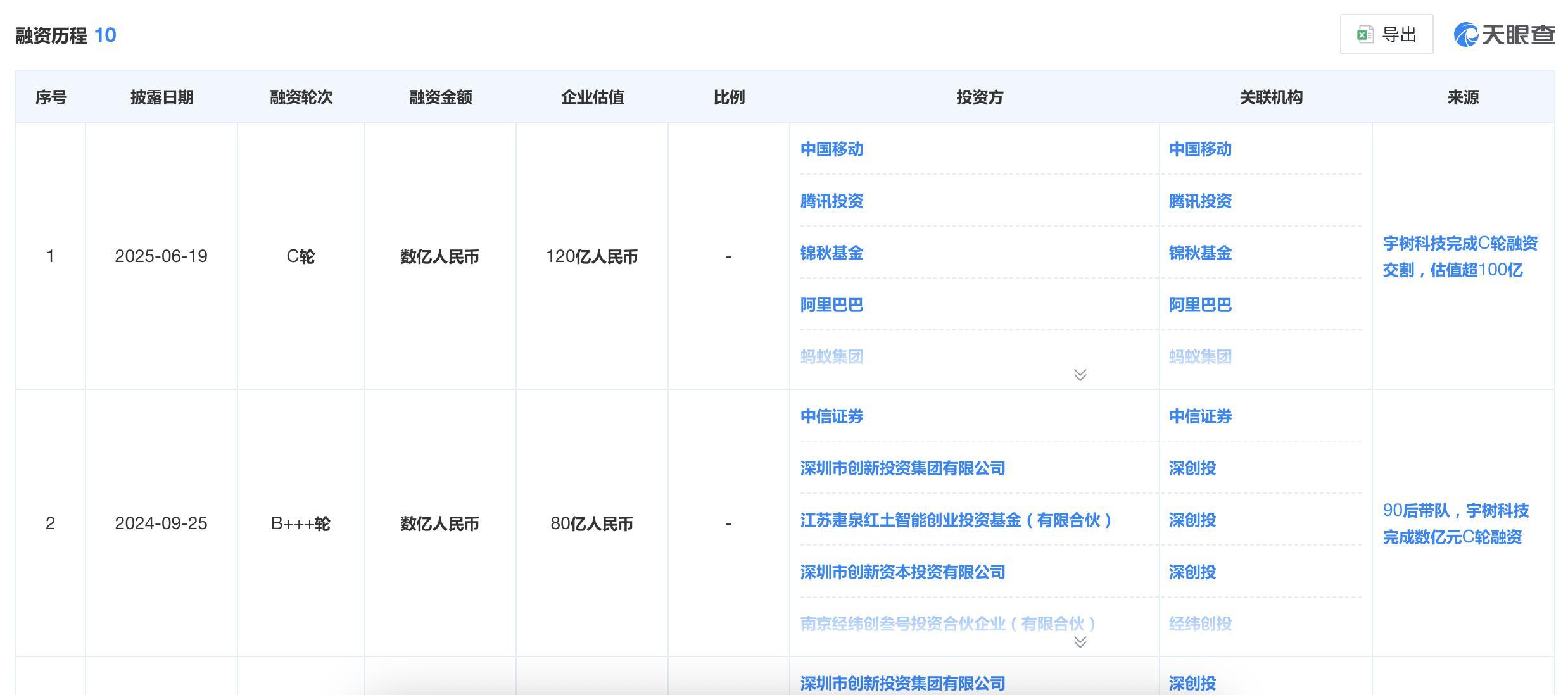 据天眼查,宇树科技历经十轮融资,C轮眩惑了中国转移、腾讯、锦秋基金、阿里巴巴、蚂集聚团、吉祥成本的豪华声势,估值破百亿。